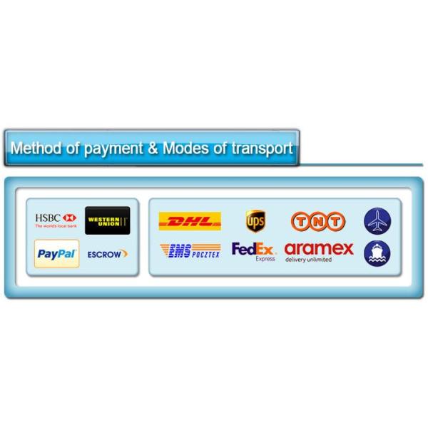 A8:Many Optional delivery / shipping methods: by ship, by air plane, by commercial express, specific line transportation, by post, etc, guaranty the goods reach cust